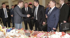 27 февраля в рамках деловой программы в Доме культуры г. Краснослободск состоялось рабочее совещание руководителей сельскохозяйственных организаций Приволжского федерального округа. Республику Мордовию представили Председатель Правительства Владимир Федорович Сушков и заместитель Председателя Правительства - Министр сельского хозяйства и продовольствия РМ Владимир Николаевич Сидоров. Перед началом совещания Максим Увайдов осмотрел коллективную экспозицию сельхозпроизводителей нашего региона. Директор по мясопереработке АО «Птицефабрика Чамзинская» Артемий Сиушов рассказал делегации об итогах работы агрогруппы за 2019-й год, а также о стратегических планах холдинга.